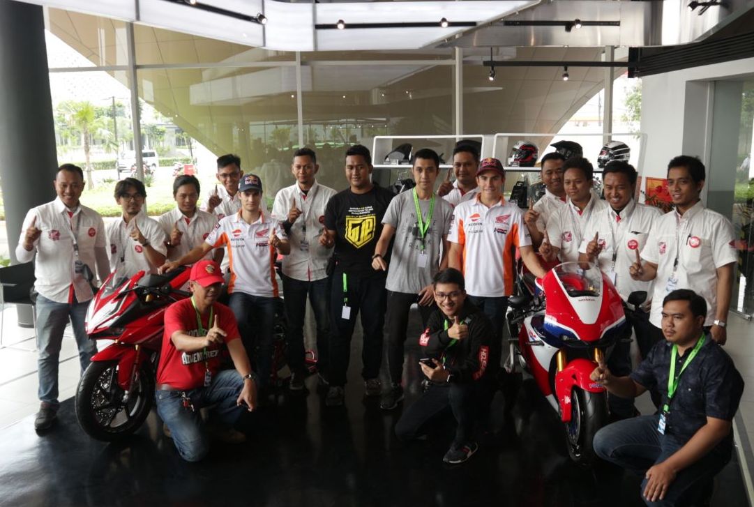Sebelumnya, 10 orang anggota komunitas tersebut dapatkan kesempatan langka tatap muka langsung duo jagoan Honda Repsol, Marc Marques dan Dani Pedrosa. Meet and Greet komunitas Honda CBR Jakarta dan Tangerang tersebut berlangsung pada Selasa (17/10) berlokasi di Honda Wing Dealer Bintaro. Kedua pebalap tersebut sempat berfoto bersama dan juga berikan selamat kepada 10 anggota serta melepas langsung rombongan rolling city.