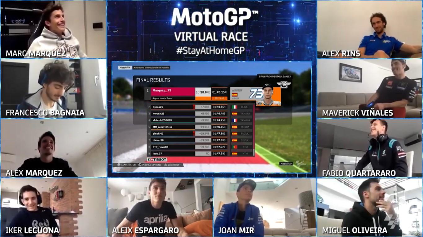 Kawan-Kawan.... Balapan MotoGP secara virtual digelar yang diikuti oleh 10 pembalap MotoGP. Cukup seru balapannya yang akhirnya dimenangkan oleh adik Marc Marquez yaitu Alex Marquez.