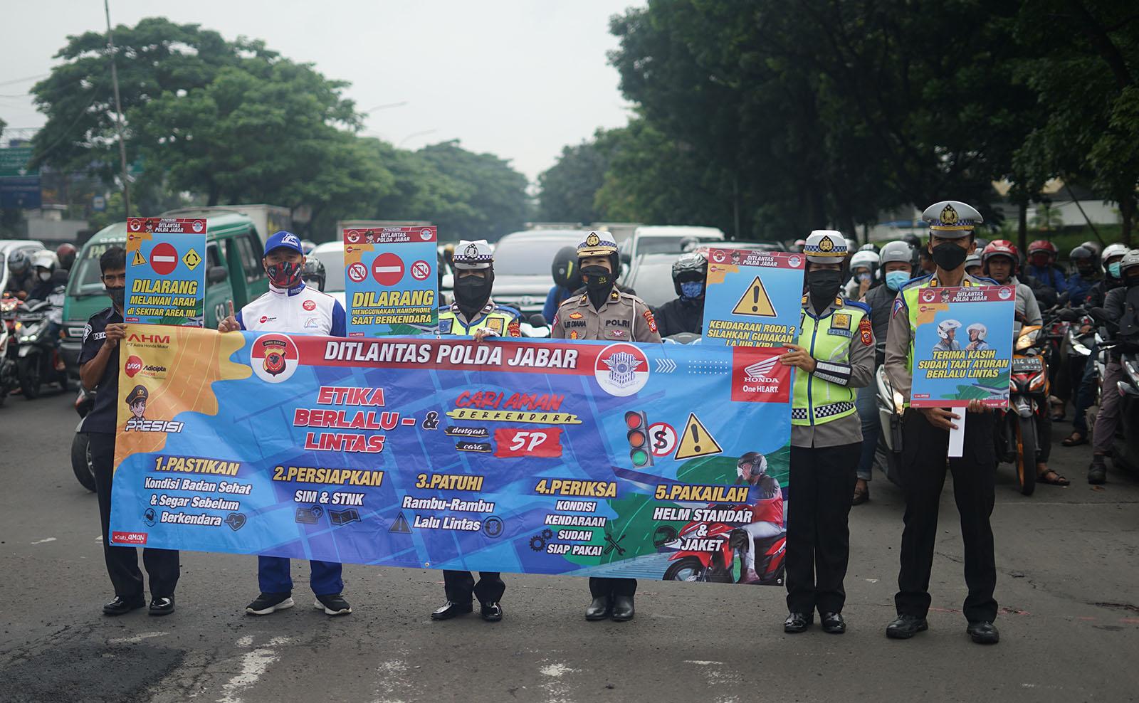 “Tim Safety Riding Honda Jawa Barat bersama dengan Dirlantas Polda Jabar juga memberikan himbauan ke seluruh pengendara di beberapa titik perempatan yang paling banyak terjadi kecelakaan dan terdapat blind spot di wilayah Kota Bandung melalui baliho, spanduk, penyebaran brosur, dan buku pedoman keselamatan berlalu lintas,” ujar Demmy.