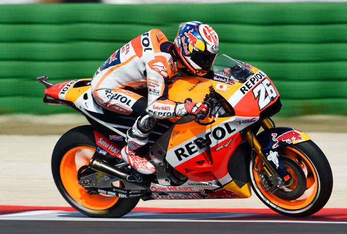 Dani Pedrosa tampil cukup gemilang pada kejuaraan dunia MotoGP yang berlangsung di Misano World Circuit Marco Simoncelli, San Marino (11/8). Pada seri ke-13 ini pebalap tim Repsol Honda itu berhasil meraih podium pertama.