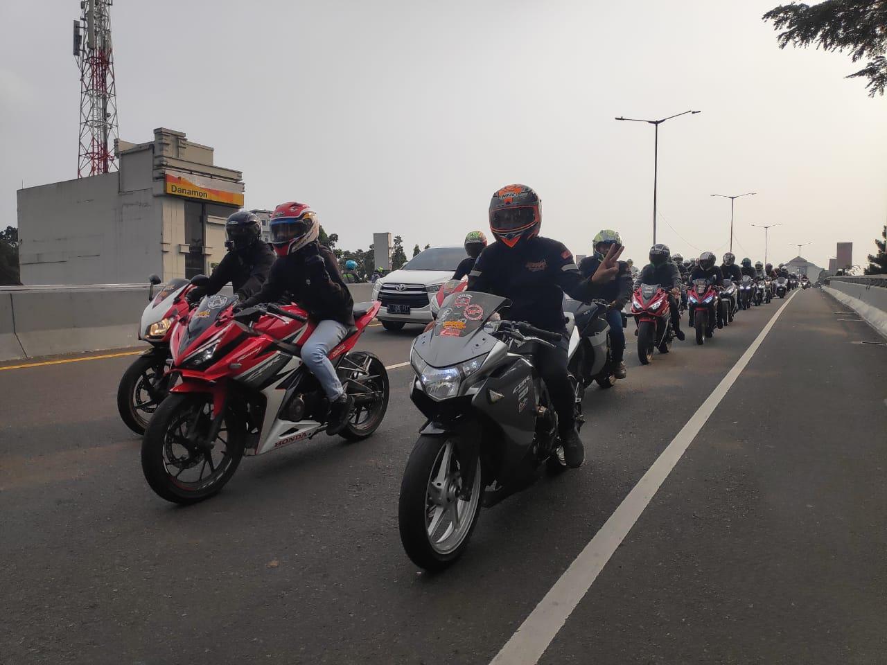 Konvoi menggunakan CBR Series ini juga sekaligus mengkampanyekan keselamatan berkendara #Cari_Aman kepada masyarakat di kota Bandung.