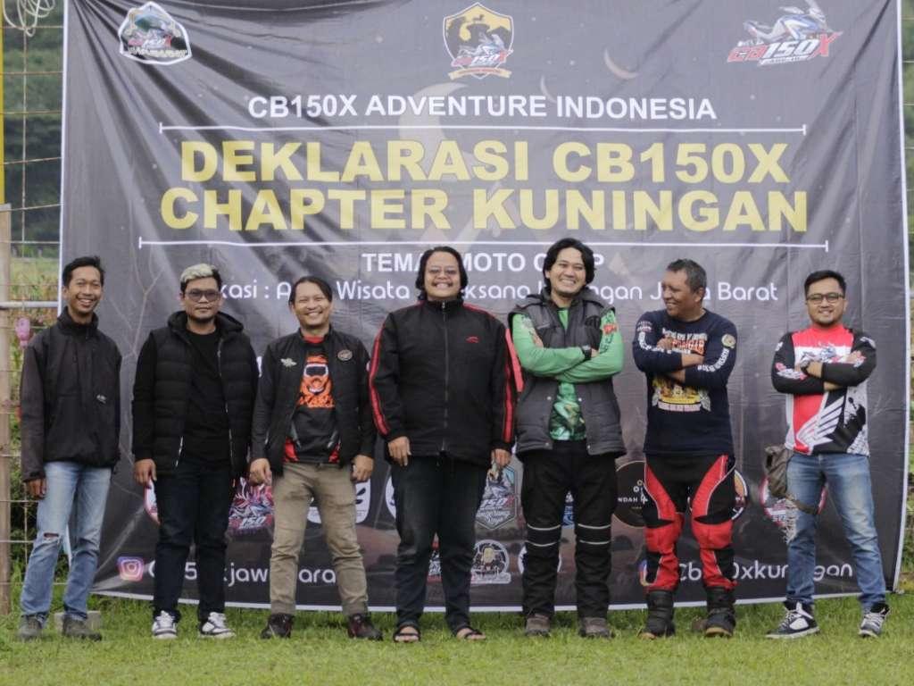 Sampai di lokasi, kegiatan dimulai dengan registrasi peserta, dilanjutkan dengan menyanyikan lagu kebangsaan Indonesia Raya dan sambutan dari para ketua masing-masing chapter juga sambutan dari Kapolsek Jalaksana serta tamu pendukung acara. Pada acara puncak dilakukan kegiatan potong tumpeng dan penyerahan secara simbolis sertifikat deklarasi terbentuknya komunitas baru Honda CB150X Adventure Indonesia chapter Kuningan, sebagai wujud rasa syukur atas kegiatan yang terlaksana dengan lancar acara ditutup dengan doa bersama.