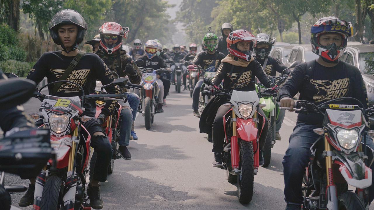 Ratusan sepeda motor Honda CRF 250 dan CRF 150 berkumpul dan melakukan rolling city di jalan kota Surabaya dalam rangka hari International Supermoto Ride Day.