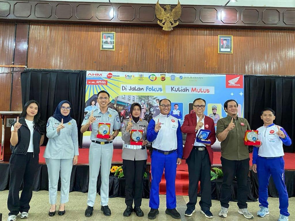 Bandung – PT Daya Adicipta Motora (DAM) bersama Polda Jawa Barat, Jasa Raharja, dan Universitas IKOPIN kembali menggelar edukasi keselamatan berkendara bagi generasi muda. Mengusung tema “Di Jalan Fokus, Kuliah Mulus”, kegiatan ini berlangsung pada 29 September 2025 di Gedung Graha Suhardani Universitas IKOPIN dan diikuti oleh ratusan mahasiswa Universitas IKOPIN.