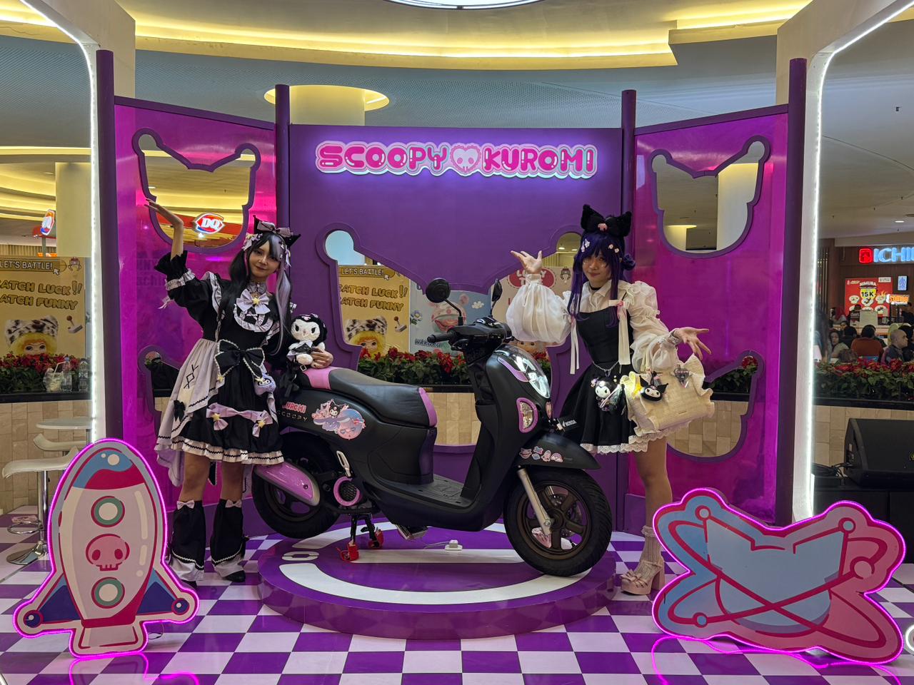 Banyak pengunjung yang memanfaatkan kesempatan untuk berfoto di area photo booth bertema Kuromi serta mencoba langsung duduk di atas unit Scoopy Kuromi Limited Edition yang tampil mencuri perhatian dengan nuansa ungu dan detail aksesoris eksklusifnya.