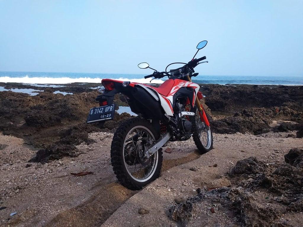 Touring ke pantai, biasanya sebagian pengendara selalu membawa motornya melintasi pasir pantai, untuk sekedar berfoto dengan latar pemandangan laut atau juga merasakan sensasi berkendara di atas pasir yang tentunya jarang mereka tamui di daerah lainnya.