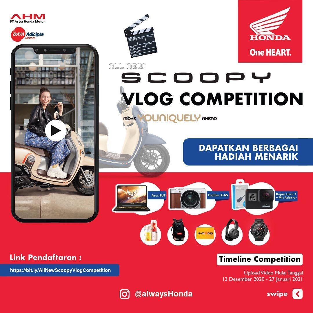 Kawan-kawan... Honda kembali mengadakan acara kompetisi, kali ini untuk kawan-kawan semua yang sedang nge-vlog yuk ikuti gelaran Scoopy Vlog Competition.