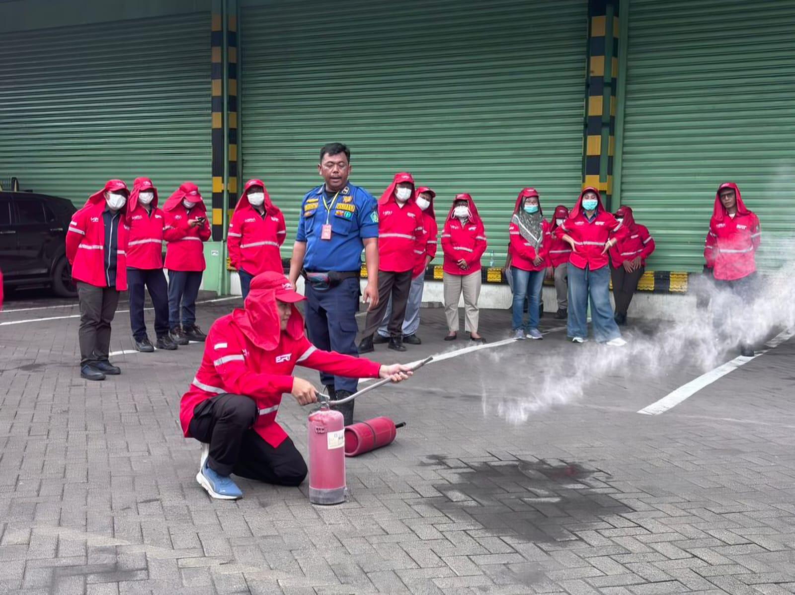 Dalam sesi pelatihan, peserta mendapatkan materi teori seputar potensi risiko kebakaran di area pergudangan, jenis-jenis api, serta teknik penanganan awal saat terjadi kondisi darurat.