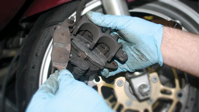 Langkah pertama yang harus dilakukan adalah membuka kaliper dan membersihkannya dari kotoran. Gunakan air dan sabun untuk membersihkannya. Setelah itu, jangan lupa untuk mengeringkannya menggunakan angin dari kompresor. Setelah kaliper bersih, berikan gemuk di pin bracket-nya.