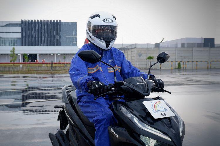 Reza menjelaskan bahwa persiapan sebelum berkendara menjadi langkah paling dasar untuk menjaga keselamatan. Menurutnya, pengendara harus memastikan sepeda motor berada dalam kondisi prima, terutama bagian ban, sistem pengereman, dan lampu-lampu. Selain itu, penggunaan perlengkapan keselamatan juga sangat penting. Helm berstandar SNI, jaket pelindung, sarung tangan, sepatu, hingga jas hujan model stelan harus menjadi perlengkapan wajib ketika berkendara di tengah hujan.