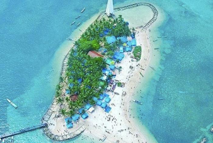 Turis akan dimanjakan dengan pemandangan pinggir pulau yang dikelilingi oleh pasir putih serta deburan ombak.